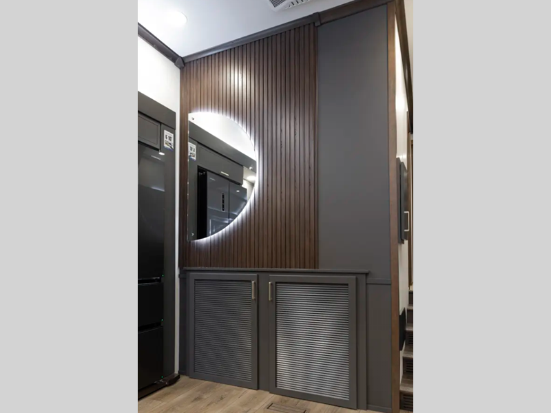 The 101" wide body frame provides a rock-solid base for your adventures, while the AlphaPly TPO roof membrane offers uncompromising durability and weather protection. Inside, the residential-style dovetail design gives a sleek, modern aesthetic, complemented by self-closing drawers and hidden hinge cabinet doors that exude refined elegance. Plus, the vinyl floor covering is effortlessly easy to clean and maintain.