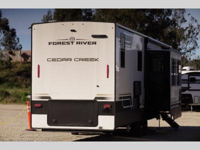 With any Cedar Creek fifth wheel by Forest River, you will find a quality-built RV with your comfort in mind! The all-aluminum super structure on 16" centers or less will provide a solid foundation to your fifth wheel, and the 3M bonded sidewalls will hold up and provide resistance to UV, heat, cold moisture, and even highway chemicals. Each model also includes a Road Warrior suspension for smooth towing, a 6-Point Hydraulic, GEN 3 Leveling System, and a new 101" wide body frame. Inside, you'll enjoy walnut/two tone wooden cabinetry with hidden hinges, cutting board drawer with cut-out trash funnel, motion lighting in the bath and bedroom closet, plus many more comforts. The New Travelfi™ Pay-as-you go internet provides the ability to bring your own internet rather than relying solely on campground WiFi, and the "Rich Solar" 200W solar panel will give you off-grid capabilities!