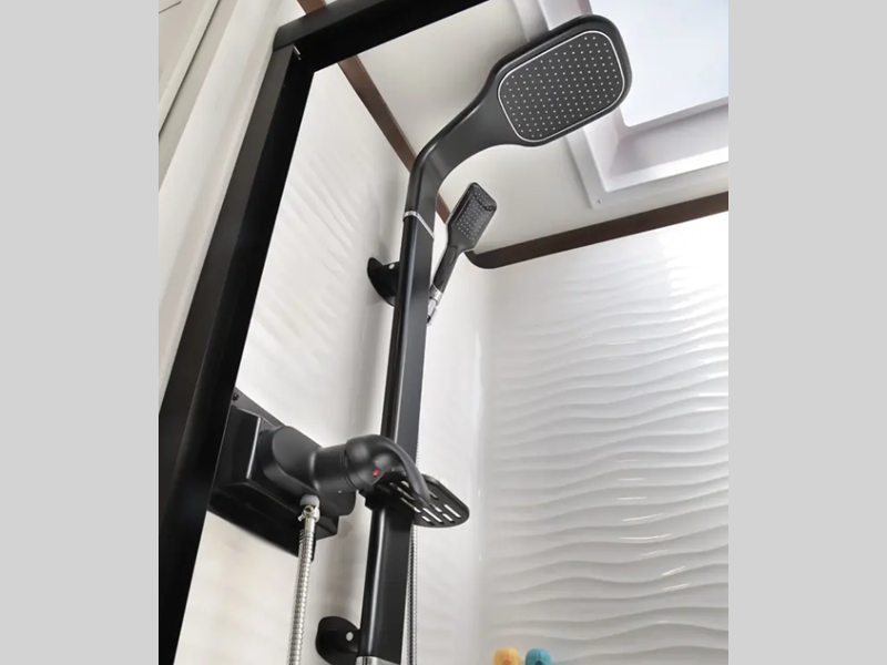 You will truly appreciate the stackable washer/dryer because it will allow you to travel without restraint, and the Truma Aqua Go Comfort on-demand hot water heater will give you hot water whenever you need it. You'll stay entertained with a Samsung LED Smart TV in the living room and a 40" LED TV in the bedroom, and the 200W solar panel will provide some off-grid capabilities.