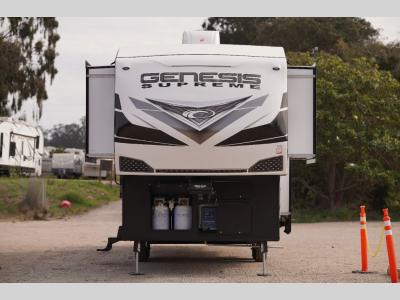 All sizes of off-road toys can fit into one of these Genesis Supreme fifth wheel toy haulers or travel trailer toy haulers! They are made for the outdoor enthusiasts and can handle harsh environments while still providing a luxurious lifestyle. With innovative floorplans built by engineers, you can know you will find what you're looking for in a toy hauler. Start your off-road journey today with your favorite model!