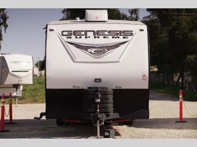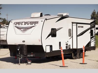 All sizes of off-road toys can fit into one of these Genesis Supreme fifth wheel toy haulers or travel trailer toy haulers! They are made for the outdoor enthusiasts and can handle harsh environments while still providing a luxurious lifestyle. With innovative floorplans built by engineers, you can know you will find what you're looking for in a toy hauler. Start your off-road journey today with your favorite model!